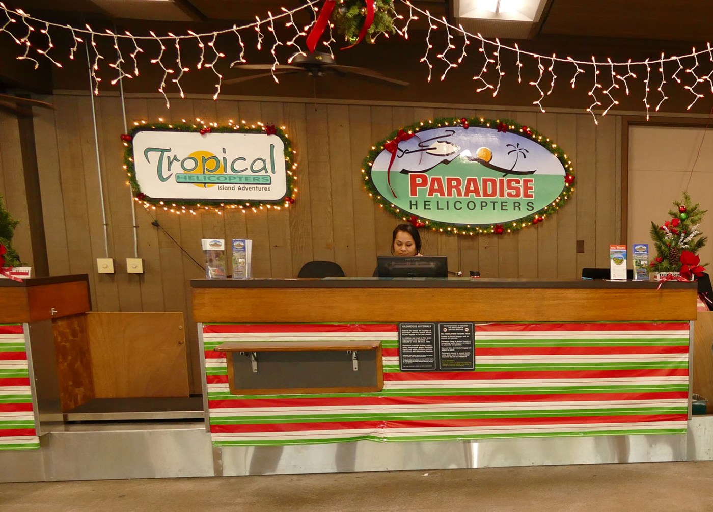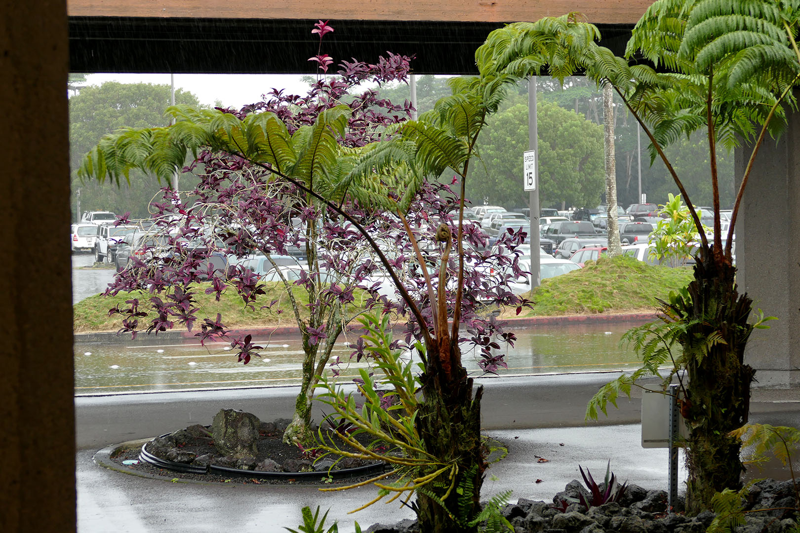 The weather was beautiful, and we were primed to have a great day. We arrived at the Hilo airport, put our bags in the tour company’s storage bins, and then did the safety training where I learned how to secure my special seatbelt since I was going to be hanging on the edge of the helicopter hundreds of feet in the air with no door to protect me. We made our way onto the air field where the first helicopter loaded passengers and took off. Then a few minutes later, that’s when our day started to trend downhill. The rain started to fall slowly, and the helicopter that was already in the air returned back to the safety of the ground. The rain kept getting heavier and eventually, our helicopter tour was cancelled. They did give us the opportunity to try to a tour scheduled a couple of hours later. We waited an hour, but the rain only got worse and the winds got up to 70 miles an hour, which led to all the rest of the tours being cancelled for the day. We were very disappointed with our bad luck, but happy that we didn’t get caught in the air with torrential rains and strong winds.
