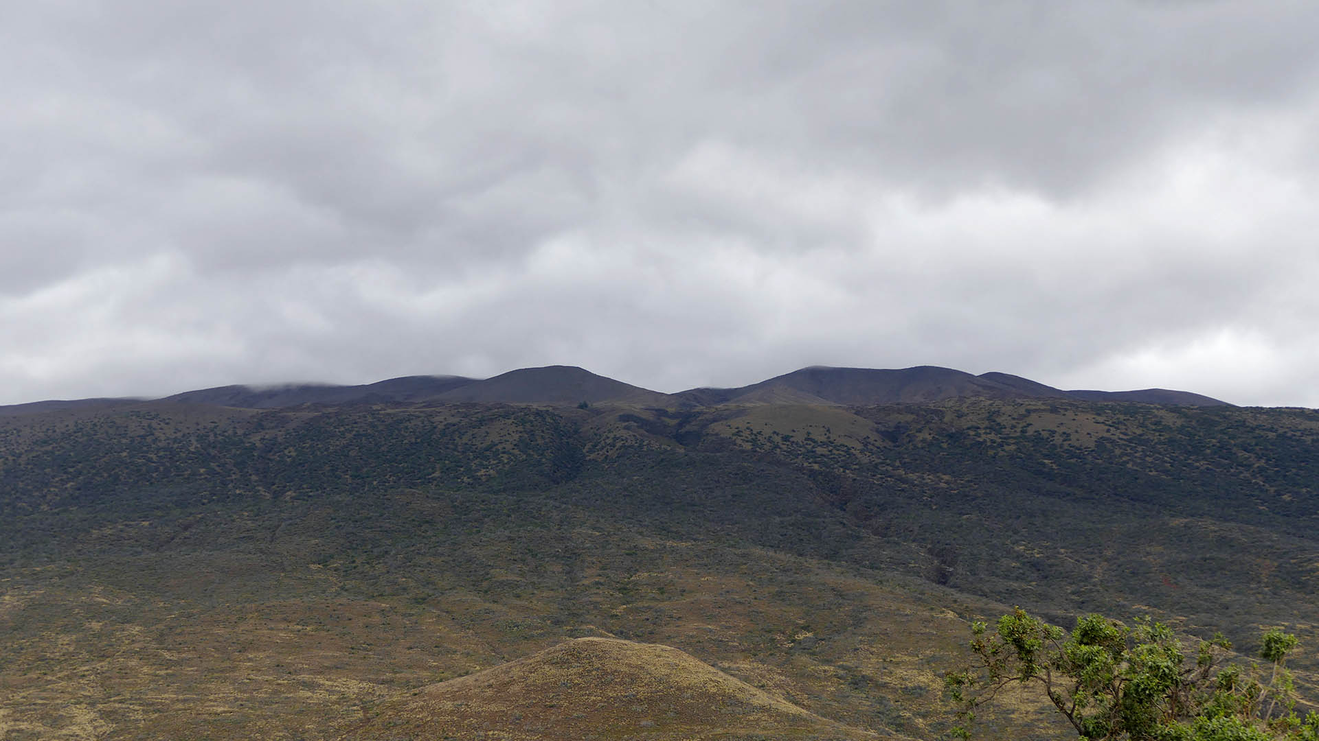 The tour picked us up at the hotel in the morning which meant that for the first time on our Big Island trip, we didn’t need a rental car. Before the tour really began, we briefly stopped somewhere close to the hotel so the guide could pick up freshly packed lunches that we’d need later in the day. The drive to Volcanoes National Park definitely has unique scenery that mixes volcanic rock that’s been eroded to different degrees interspersed with different types of vegetation, including large areas of land that used to be home to livestock. Our first stop was near the base of Mauna Kea so we could get a view of the famed mountain that we were not going to climb.