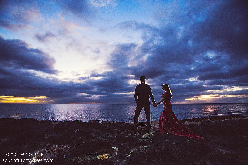 Fortunately, our top 3 were all available for our dates. The first had an absolutely amazing portfolio with a slight ethereal quality to her photos, was great on the telephone, and we got a great professional vibe from her. Her prices were on the upper end (and slightly above) what we had budgeted. The second photographer also used gentle contrasts in his work with a slight Instagram kind of feel, and produced generally nice work. His personality seemed to have a bit of that island relaxedness. He mentioned that he’d photographed hundreds weddings, but also had another full-time job. The third photographer’s style was quite different from the first two—much stronger contrast with amazing sunset backdrops. He really knew how to manipulate light.